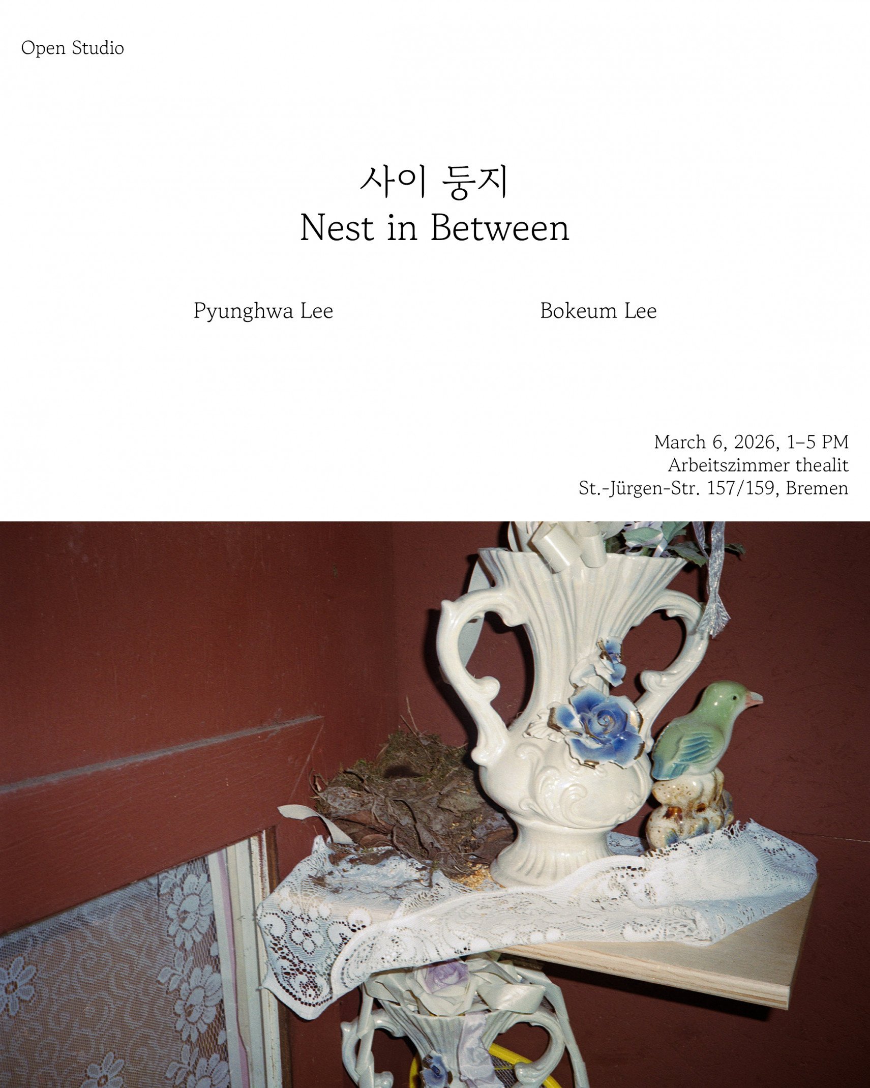 In ihrer Residency befassen Bokeum Lee & Pyunghwa Lee sich mit den Orten, die sie „Zuhause“ nannten – und wieder verließen. Als Schwestern, in Korea geboren und nun in Deutschland lebend, beschreiben sie ihre Beziehung zu Wohnstätten mit diesen Worten: „[So] haben wir eine Vielzahl von Wohnungen, Räumen und Zwischenorten durchlebt. Manche blieben uns in Erinnerung, andere verschwinden langsam oder sind bereits ausgelöscht – nicht nur physisch, sondern auch sprachlich und innerlich.